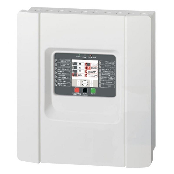 The Aritech 1X-X3E-99 is a networkable, enhanced conventional fire alarm and extinguishing control panel. It is supplied in the local language with 3 fire zones that support up to 32 devices per zone. These zones may be configured for extinguishing in a single zone or double zone configuration in any combination of zones. In addition, the panel offers supervised outputs for first stage notification, second stage notification as well as optical warning indicators and actuator activation. Standard relay outputs are provided for EN54 compliance and system status notification, as well as multiple inputs for system control.