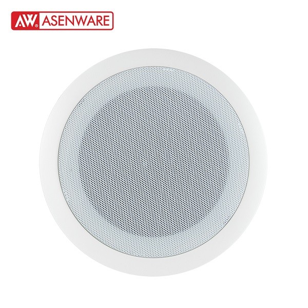 The AW-SP02 big ceiling speaker functions as a standalone public audio system for emergency evacuations. It automatically plays pre-recorded audio when receiving alarm input from fire or security alarm systems and can also broadcast real-time sound from a microphone or other line-in sources.